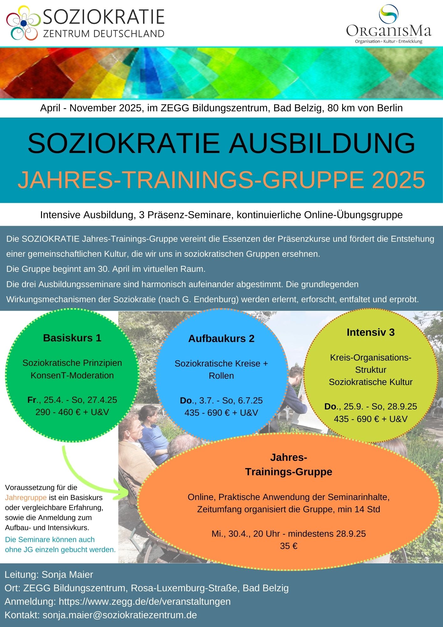 Für Organsiations-EntwicklerInnen und Projektleiter* einer laufenden Implementierung biete ich auch einen Lernkreis mit entsprechenden Inhalten an.